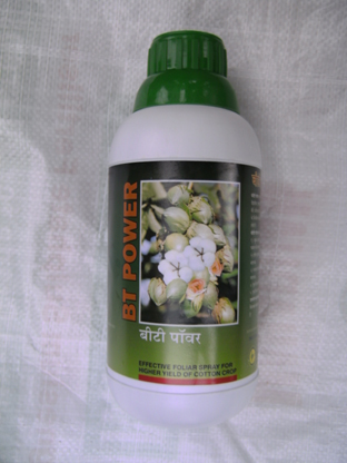 BT Power is the most effective foliar spray for higher yield of cotton . BT Cotton requires ample nutrient for higher yield . Secondary foliar feeding of nutrients at regular intervals helps in the maximization of flowers and bolls.