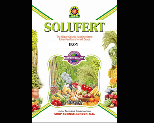 Soluferts are produced from highly pure raw materials, entirely free of polluting agents like Chlorine and Sodium. Fully water soluble and hence readily assimilated by the crops' root system. Solufert Iron is in powdered form containing ferrous sulphate , the